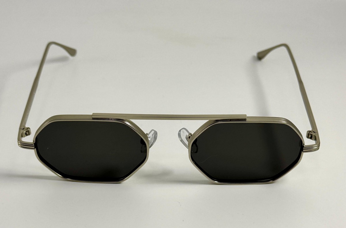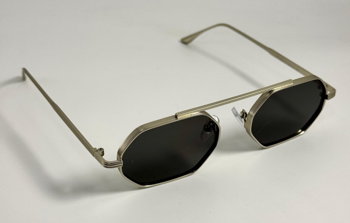 montatura in metallo argento con lente uniforme grigia