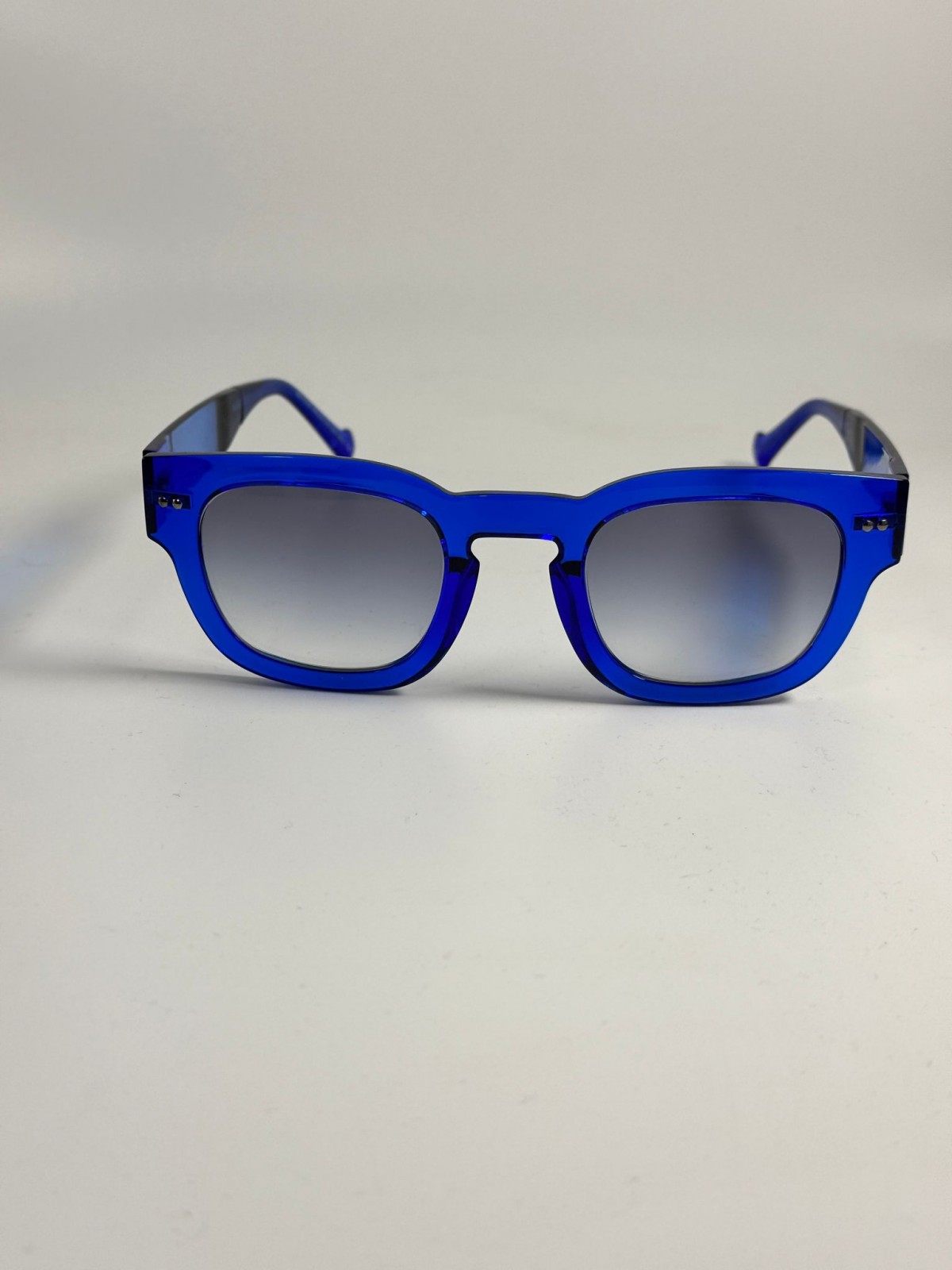 montatura in acetato blu con lente sfumata grigia