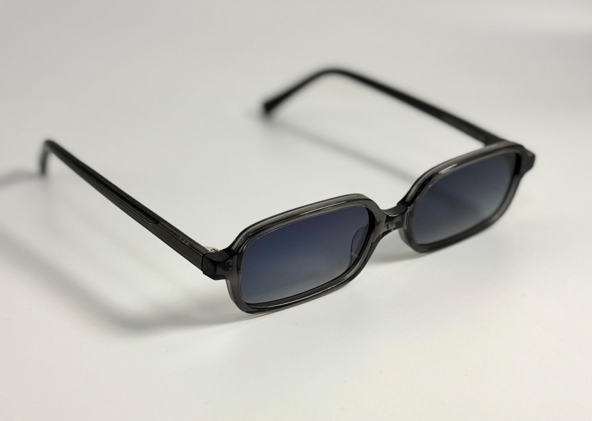 montatura in acetato grigia con lente sfumata grigio/blu