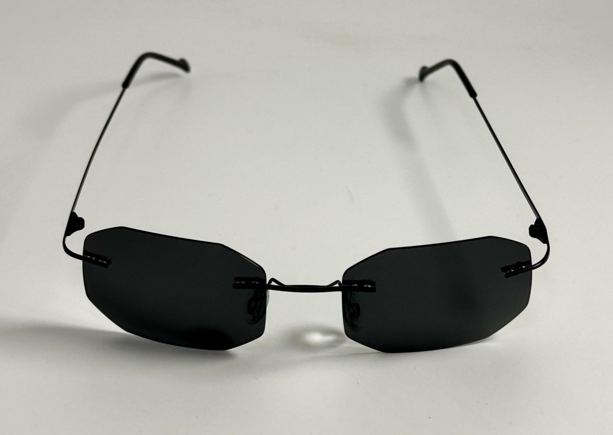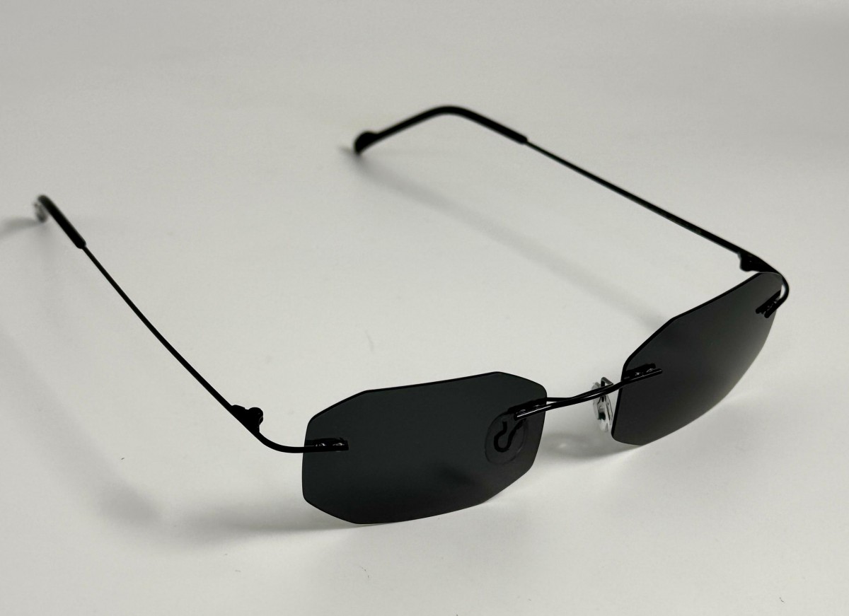 montatura a giorno nera con lente uniforme grigia