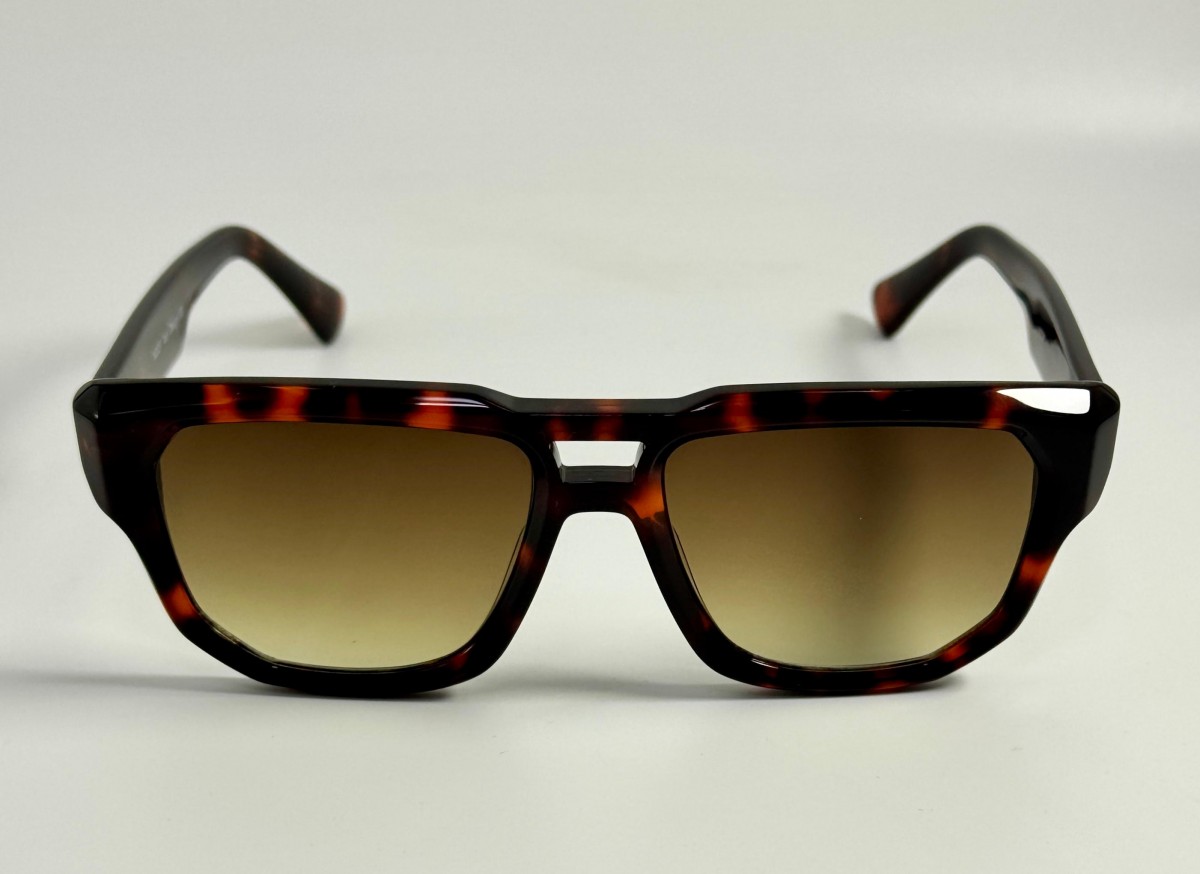 montatura in acetato tartarugata con lente sfumata marrone e antiriflesso interno